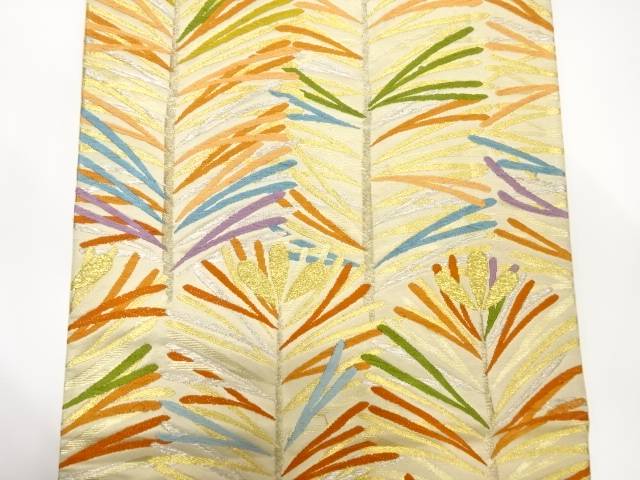 <帯サイズ>(単位:cm) 長さ 408 幅 31 状態 非常によい 素材 正絹 色目 クリーム 【商品説明】 状態は大変良いです。 材料としては十分お使い頂けます。 材料用の出品となりますので、薄アク、糊アク、薄ヤケ、くすみなどがあります。 力のない物、破れ、致命的な汚れ以外は記載しておりません。 写真をよくご参照の上、ご判断ください。