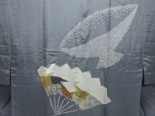 <着物サイズ>(単位:cm) 身丈 138 身丈(出し) 裄 64 裄(出し) 袖丈 48 袖丈(出し) 後幅 前幅 つま下 状態 非常によい 素材 正絹 色目 ブルーグレー 技法 絞り