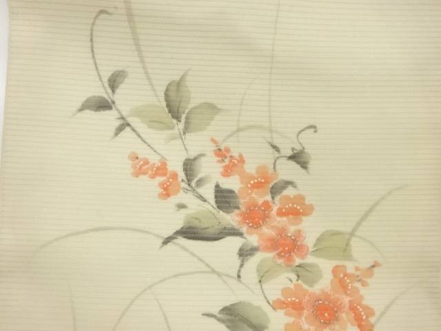 <名古屋帯サイズ>(単位:cm) 太鼓部分長さ 115.5 太鼓部分幅 30 前部分長さ 242 前部分幅 15 時代 現代(1989 - ) 状態 非常によい 素材 正絹 色目 オフホワイト 技法 刺繍 【商品説明】 裏面に数点の色移りが有ります。 その他に数点の薄くすみと薄アクと薄ヤケが有ります。 状態は大変良いです。 着用可能です。 natsuk