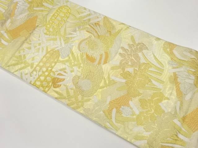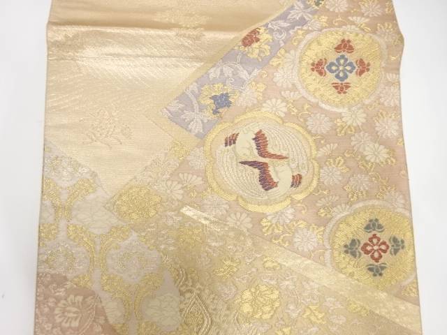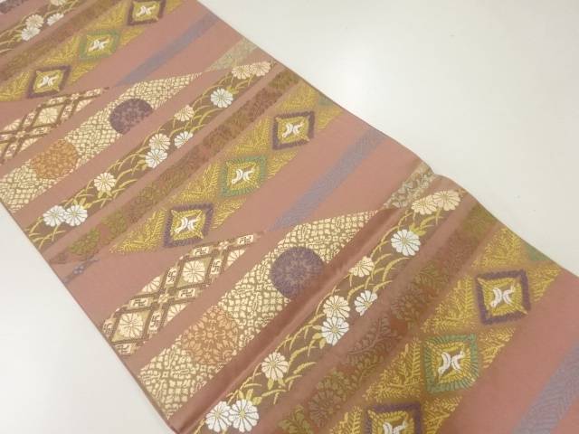 <帯サイズ>(単位:cm) 長さ 416 幅 31 状態 非常によい 素材 正絹 色目 金・ピンクベージュ 【商品説明】 状態は大変良いです。 材料としては十分お使い頂けます。 材料用の出品となりますので、薄アク、糊アク、薄ヤケ、くすみなどがあります。 力のない物、破れ、致命的な汚れ以外は記載しておりません。 写真をよくご参照の上、ご判断ください。