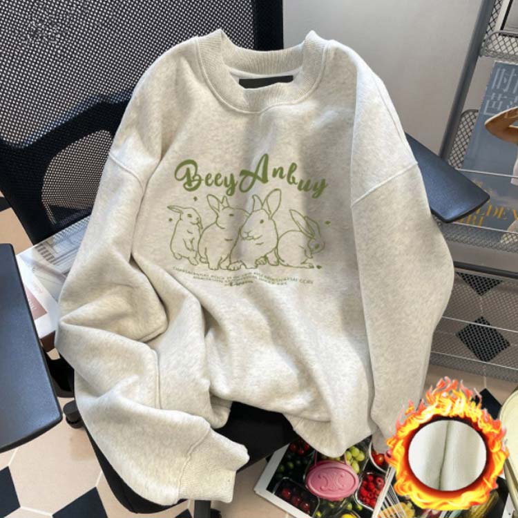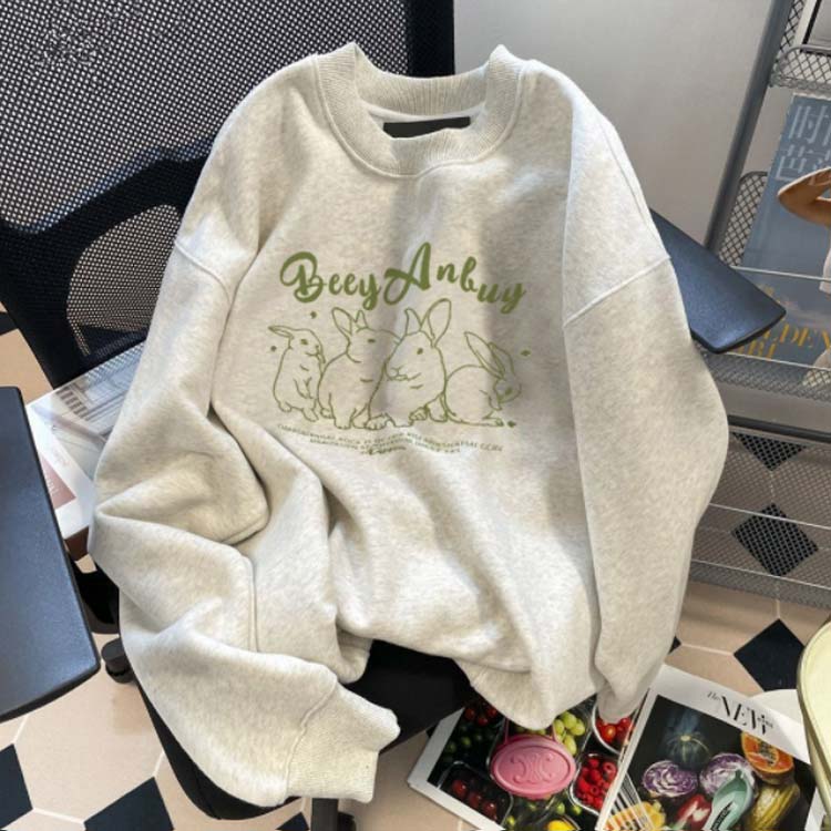 大人可愛いウサギ柄のカジュアルデザインの長袖裏毛トップスです。