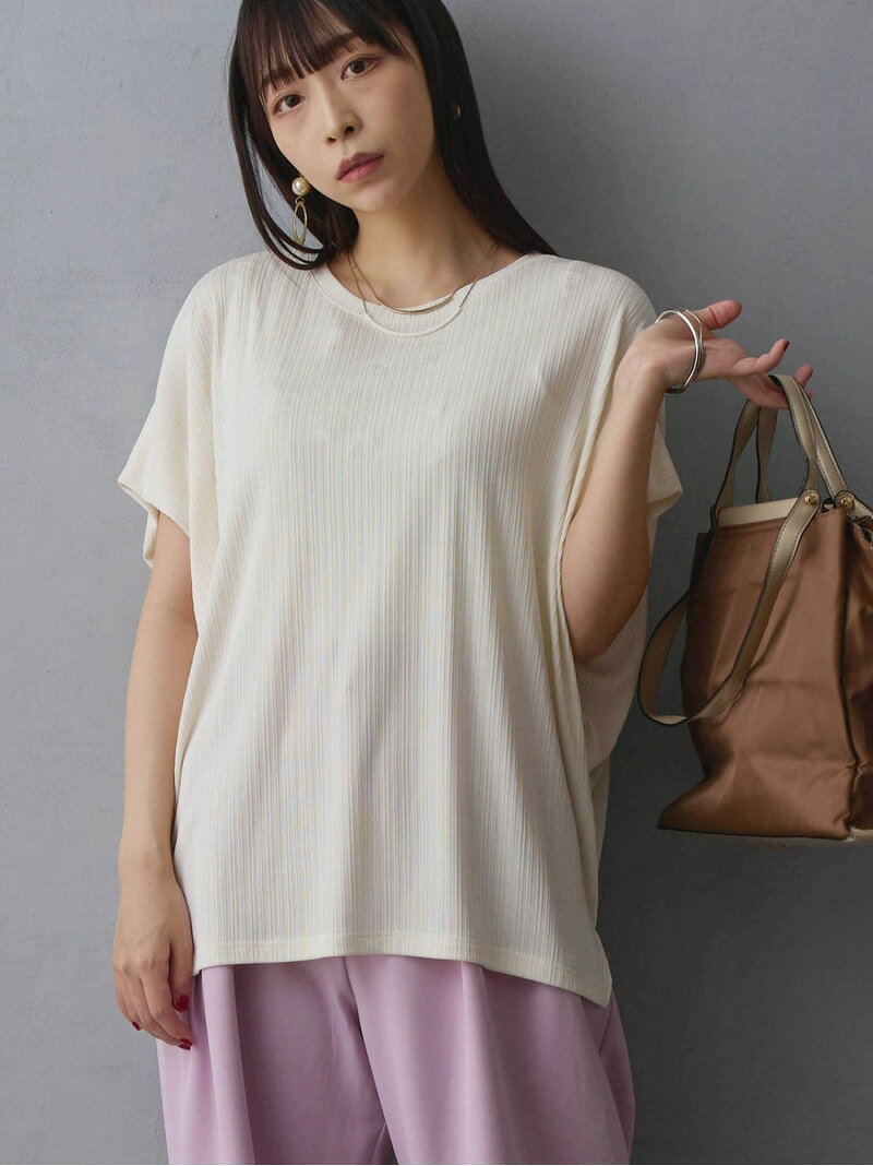 【Styling】ランダムリブの縦目がすっきりとしスタイルアップに、どんなボトムスとも相性が良く幅広いコーディネートを楽しめます。