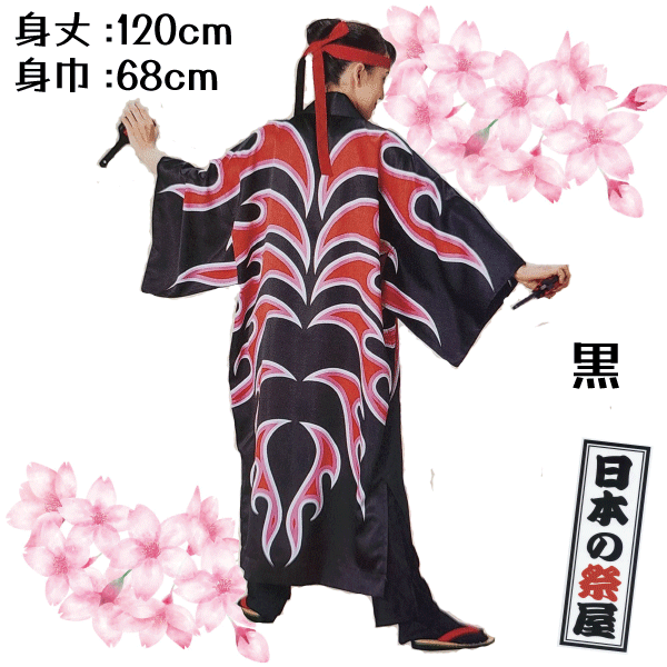 ●素材:ポリエステル100% ●サイズ:身丈120cm・身巾68cm ●スリット:30cm ●分散染料 *袢天のみの商品となります。