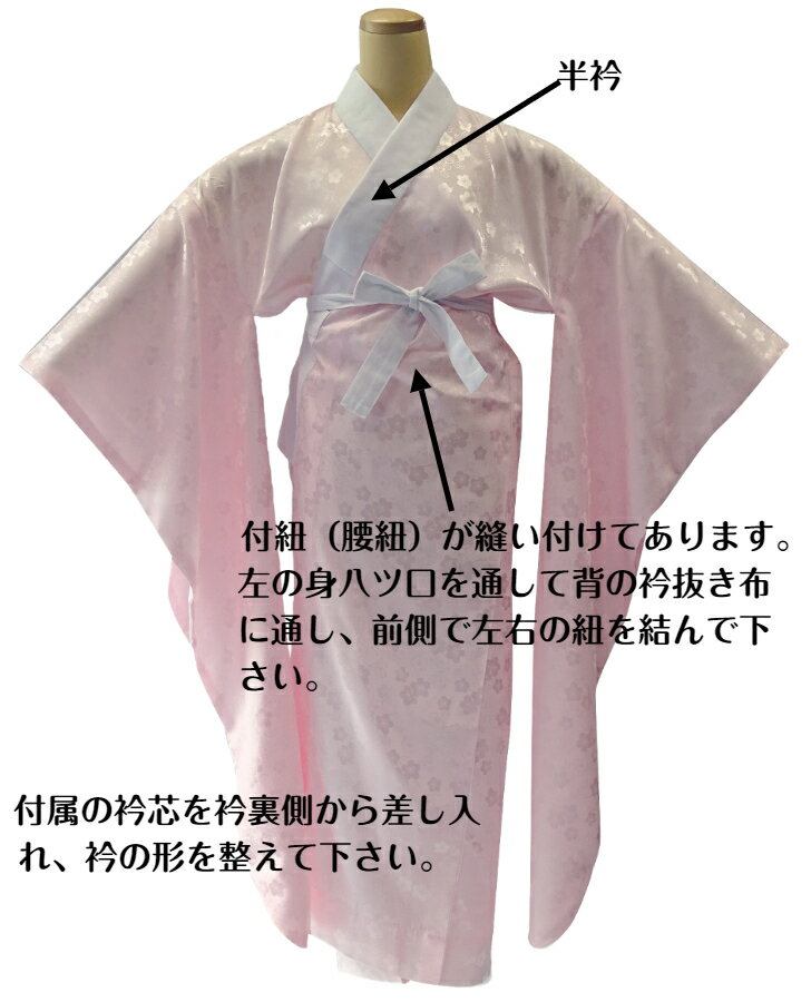 【フリーサイズ】 身丈:126cm 裄丈:67.2cm 袖丈:107cm 肩巾:34cmその他商品説明 ●ポリエステル素材なので、ご家庭で手軽に丸洗いが出来ます。