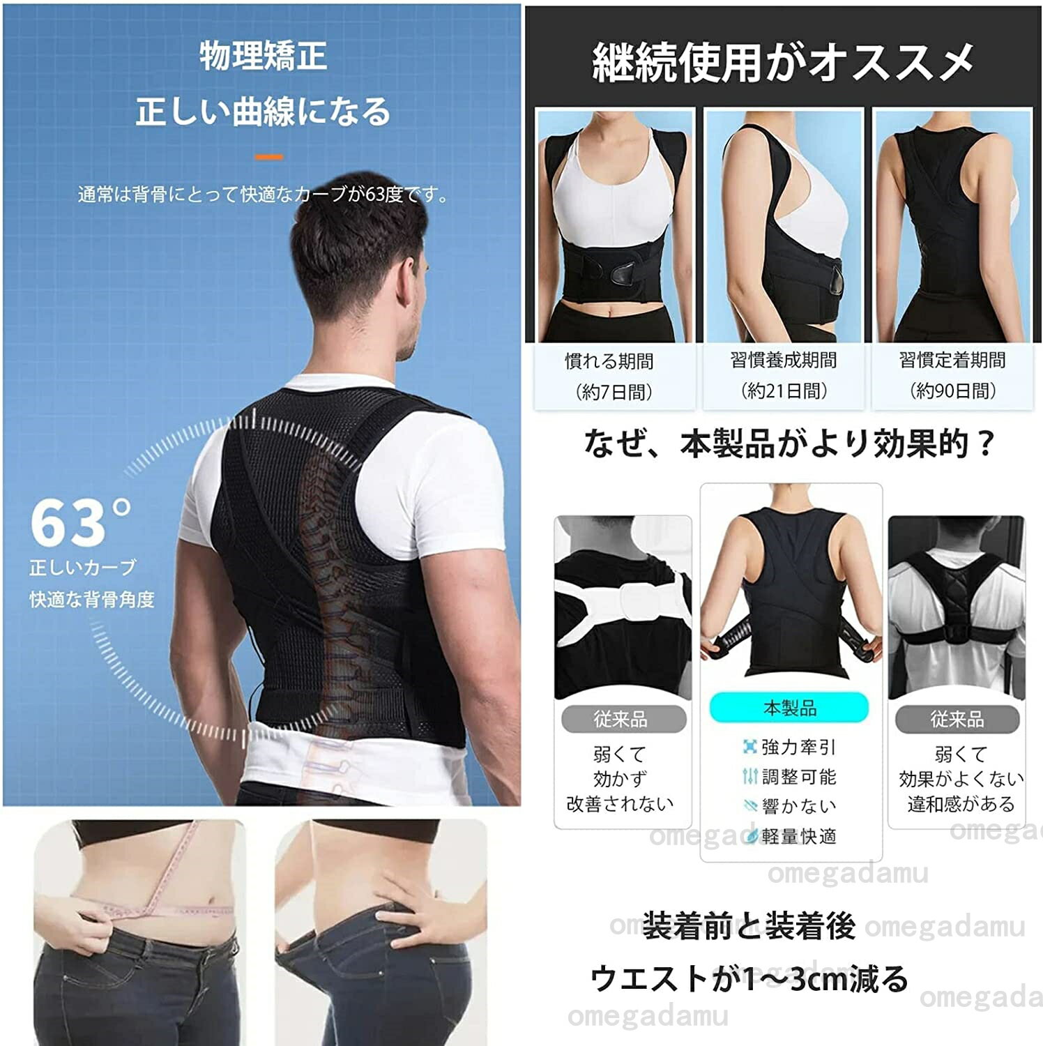 猫背解消 姿勢サポーター、自由調整、男女兼用。