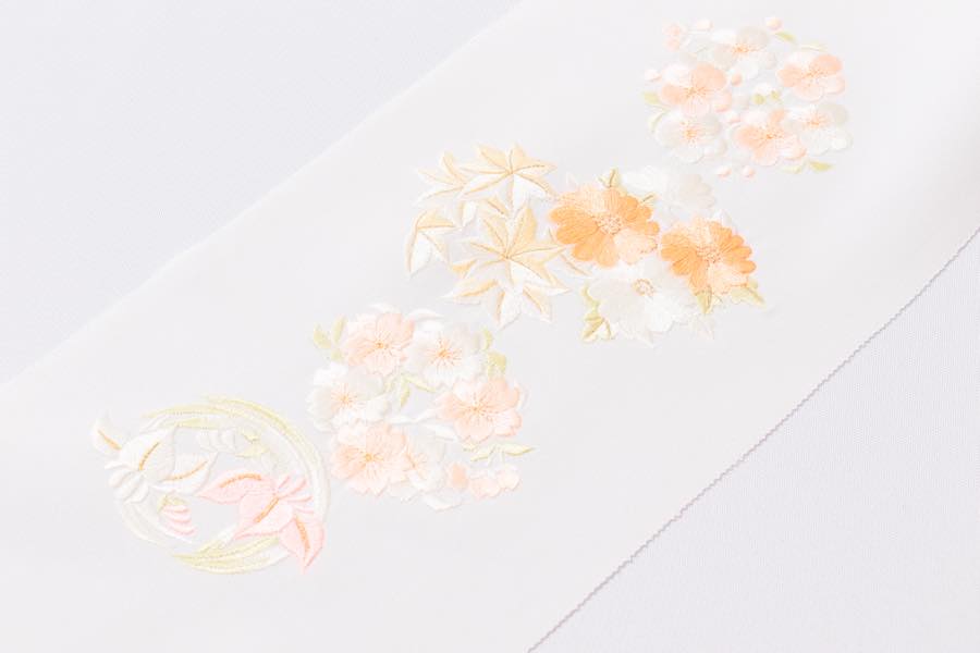 京都和装小物 加藤萬 みふじ ブランド 刺繍入りの半衿 振袖、訪問着、付下げ、小紋などにおすすめな一枚 本体絹100% 刺繍糸レーヨン100% 金属糸使用 ※刺繍は繊細の為、爪などのが当たって糸が出ることがございます。 ※なるべく実物に近づけるようにお写真撮っておりますがPCの画面によっては 実物と異なる場合がございます。ご理解ください
