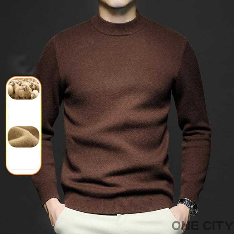 合わせるアイテムを選ばない、シンプルなデザインのモックネックニットです。
