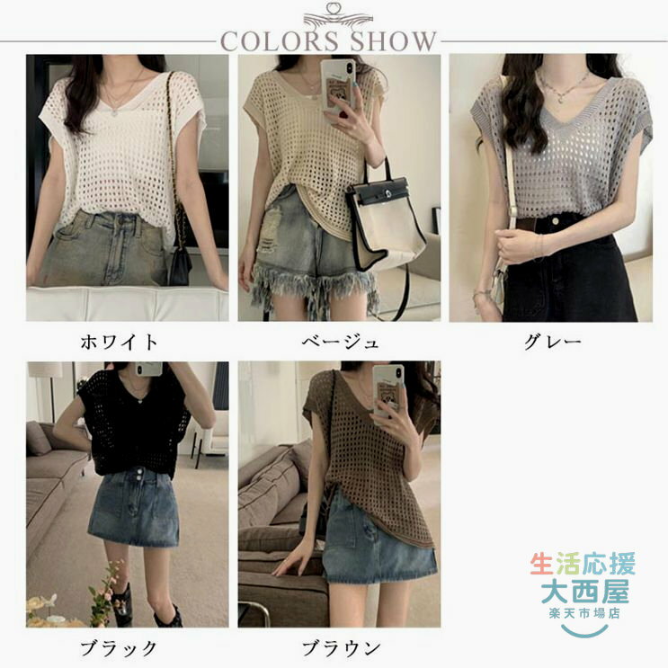 ■ 商品説明夏のレイヤードコーデに最適♪キャミソールなどインナー次第、いろんなコーデが楽しめるサマーニットベスト。