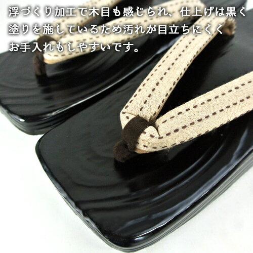 ■ 男性用下駄 角ソフト黒目 日田下駄の特徴である、浮づくりに加えて塗り加工を施しています。