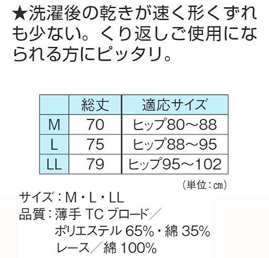洗濯後の乾きが早く形くずれも少ない♪ くり返しご利用になる方にピッタリ♪ ●品質:ポリエステル65% 綿35% レース/綿100% サイズ:M・L・LLサイズ