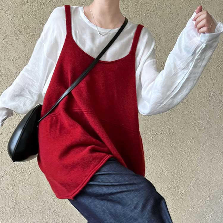 全4色!ふわっと広がるチュニックニットベスト。