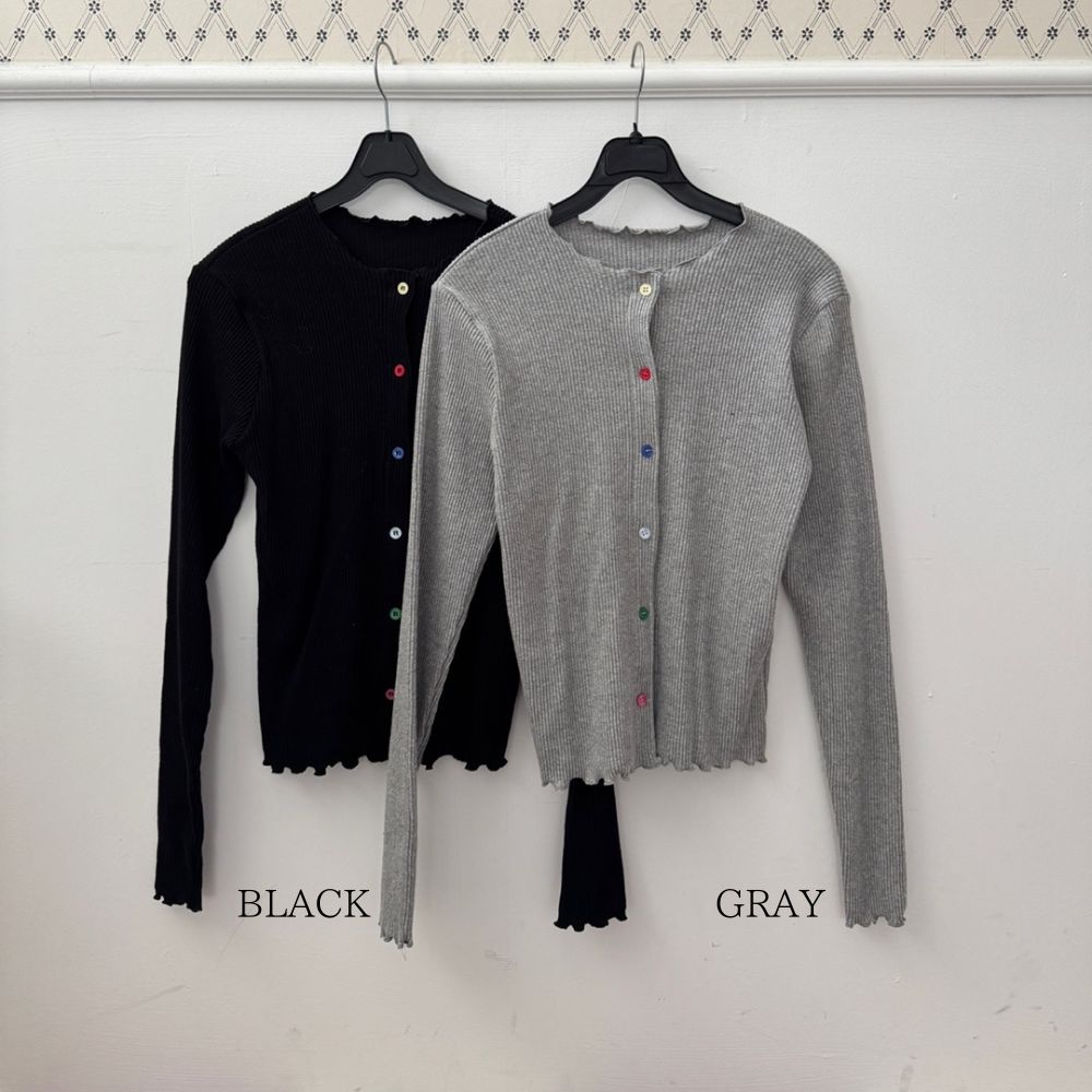 カーディガン 長袖 カラーボタン リブ スリムフィット フロントボタン 羽織 コットン カジュアル 品番:LKT-2508-001 カラーボタン可愛い、リブ編みコットンカーディガン。
