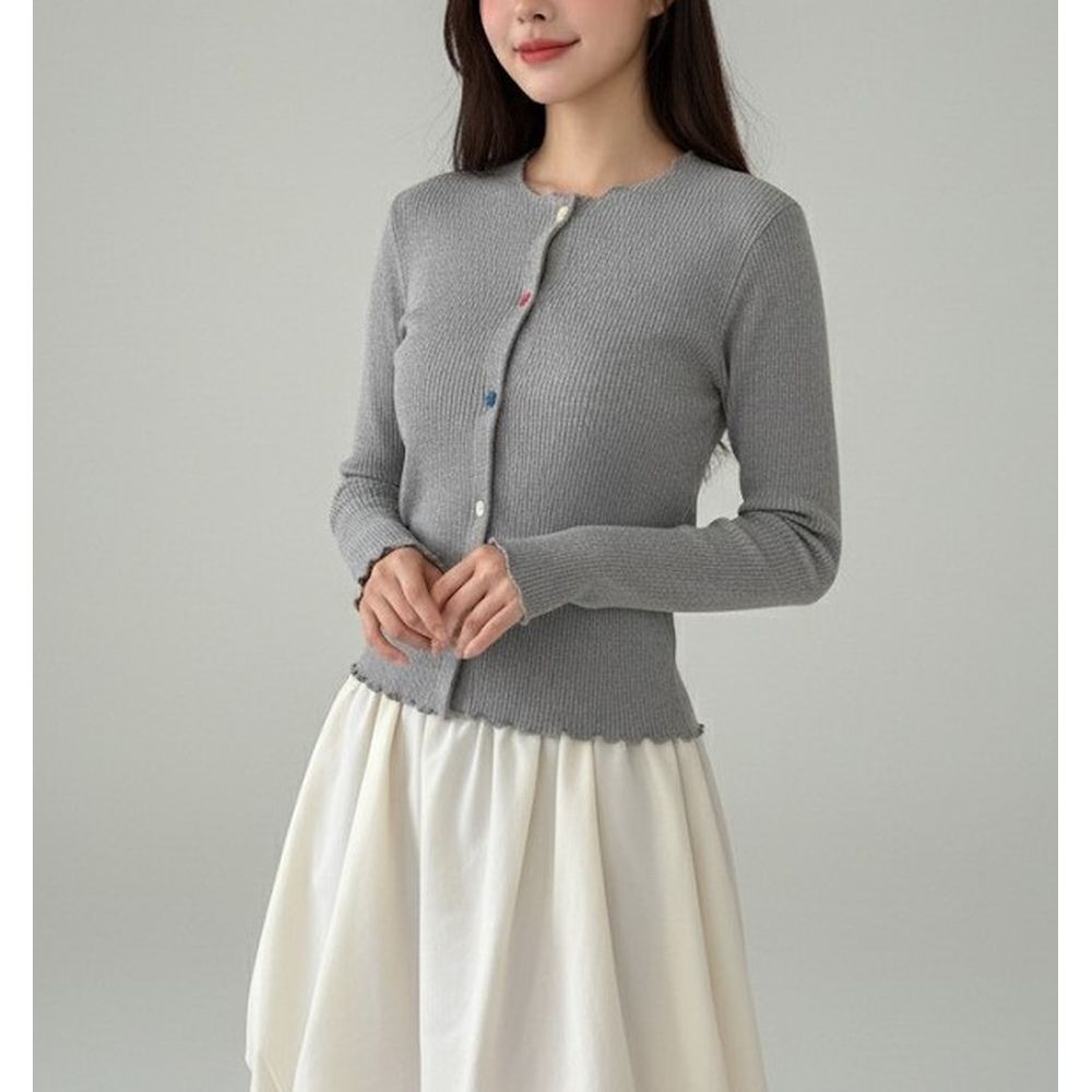 orubia co.,ltdカーディガン 長袖 カラーボタン リブ スリムフィット フロントボタン 羽織 コットン カジュアル 品番:LKT-2508-001カラーボタン可愛い、リブ編みコットンカーディガン。