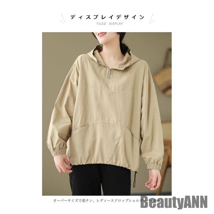 パーカー レディース 春 プルパーカー オーバーサイズ ドロップショルダー 秋 トップス フード付 プルーオーバー 長袖 春秋パーカー 無地 綿混紡 ゆったり カジュアル フード付きトップス ひも入り裾 調整可 ブラック ベージュオーバーサイズで楽チン、レディースドロップショルダーパーカールーズな雰囲気を引き立たせて、一枚でもお洒落に着こなせますボディーラインをゆったりカバーするシルエットしわが出にくくて、春秋シーズンにピッタリの生地の厚み実用性とお洒落感兼ね備え、ポケットのデザインがとても可愛い裾部分にひも入り、締め付け感が自由に調節できるのも嬉しいカジュアルスタイルの定番、ボトムスのシルエットも選ばずに合わせやすい春秋シーズンに必ず大活躍、流行に左右されず長く愛用できますカラー:ブラック ベージュ素材 綿混紡サイズ(cm) FF 着丈60-65 バスト130ご注意: