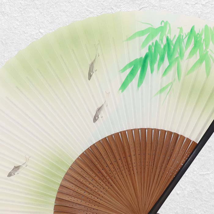 三 鮎扇面の素材は紙製で、涼しげな水辺と3匹の鮎が描かれています表面と裏面との間に骨を差し込んでいるので、骨が見えません商品スペック↓ 当店の扇子の カテゴリページは<こちら> ↓当店の取り扱いアテムカテゴリ一覧↓ <フロアガイド> ↓