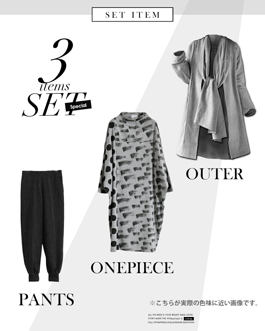 生地感 (ストール)(アウター) 透け感 なし 厚み ややあり 伸縮性 ややあり 裏地 なし 重さ 約1055g(ストール含む) (ワンピース) 透け感 なし 厚み なし 伸縮性 あり 裏地 なし (パンツ) 透け感 なし 厚み なし 伸縮性 あり 裏地 なし 重さ 約230g 素材など (ストール)(アウター) 素材 綿・ポリエステル・ポリウレタン 手洗い 可 生産国 中国 (ワンピース) 素材 ポリエステル 85% ポリウレタン 15% 手洗い 可 生産国 韓国 (パンツ) 素材 ポリエステル 90% ポリウレタン 10% 手洗い 可 生産国 韓国 メール便 不可 モデル身長 158cm/162cm/167cm ガイドご 購 入 前 に 必 ず ご 確 認 下 さ い 返品・交換はお受け出来かねます。