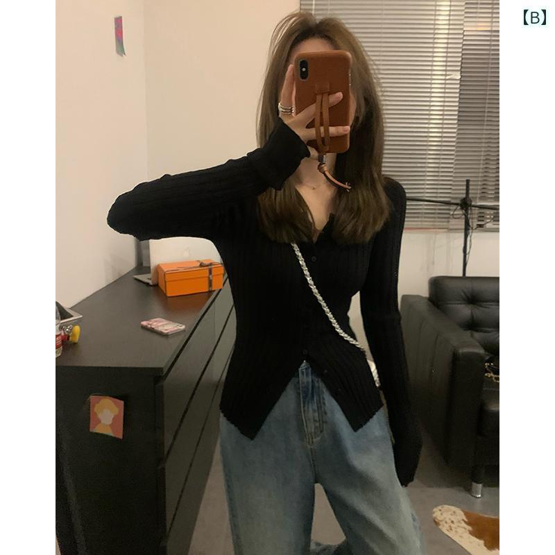 カーディガン 薄手 レディース ニット トップス 羽織もの 無地 シンプル 合わせやすい Vネック スリムフィット ショート 丈 長袖 ピンク 黒 クリーム