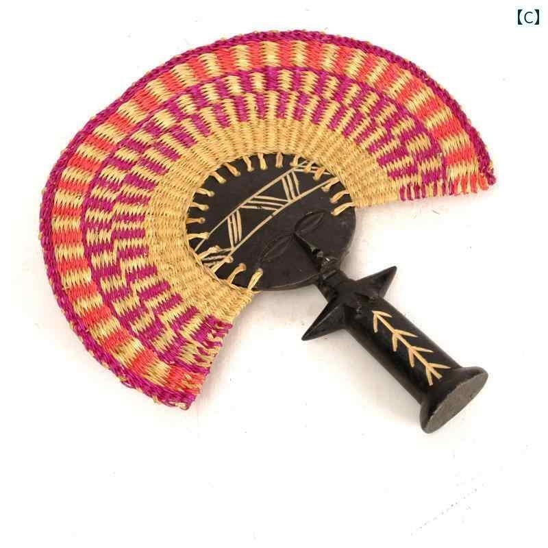 うちわ おしゃれ 春夏 エスニック アフリカ ガーナ 手織り わら 人形 自立 インテリア 雑貨 リゾート カジュアル ナチュラル カラフル