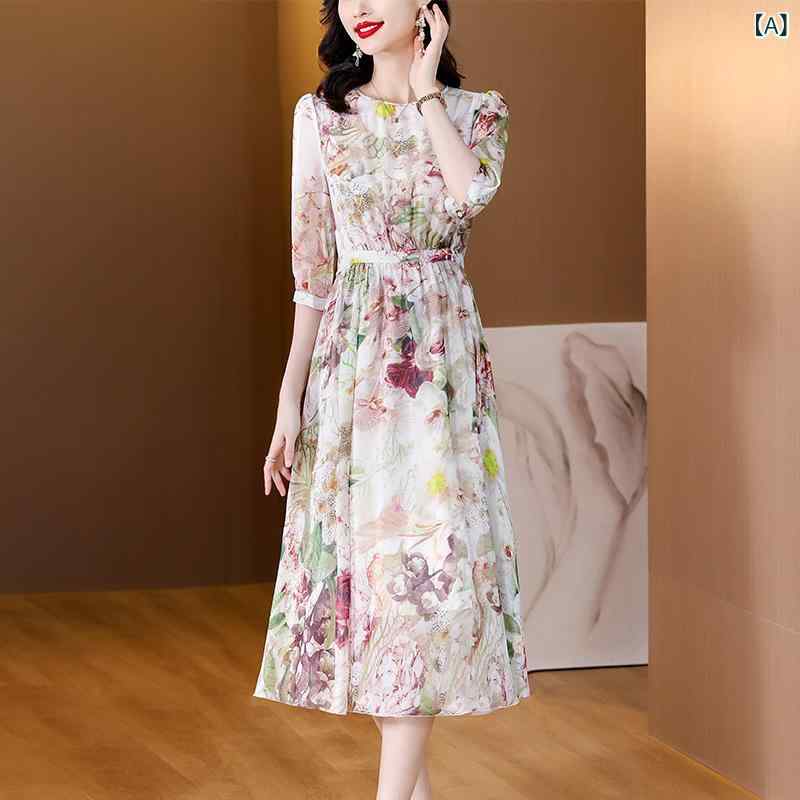 ・カテゴリ: ワンピース・スタイル: エレガント通勤・着用スタイル: プルオーバー・主な素材: ポリエステル・柄: プリント・ネックライン: ラウンドネック・袖丈: 七分袖・袖タイプ: シャツ袖・ウエストタイプ: ハイウエスト・スカート丈: ミドル丈・スカートタイプ: フリルヘム・開閉: ジッパー・サイズ展開: S, M, L, XL, 2XL, 3XL
