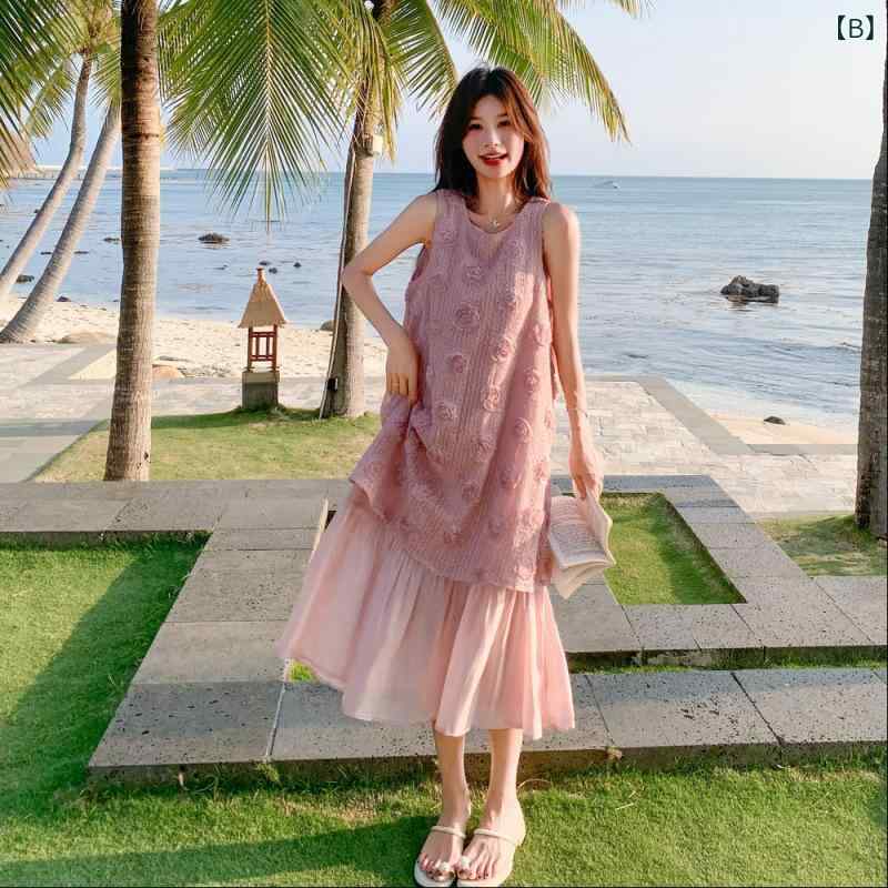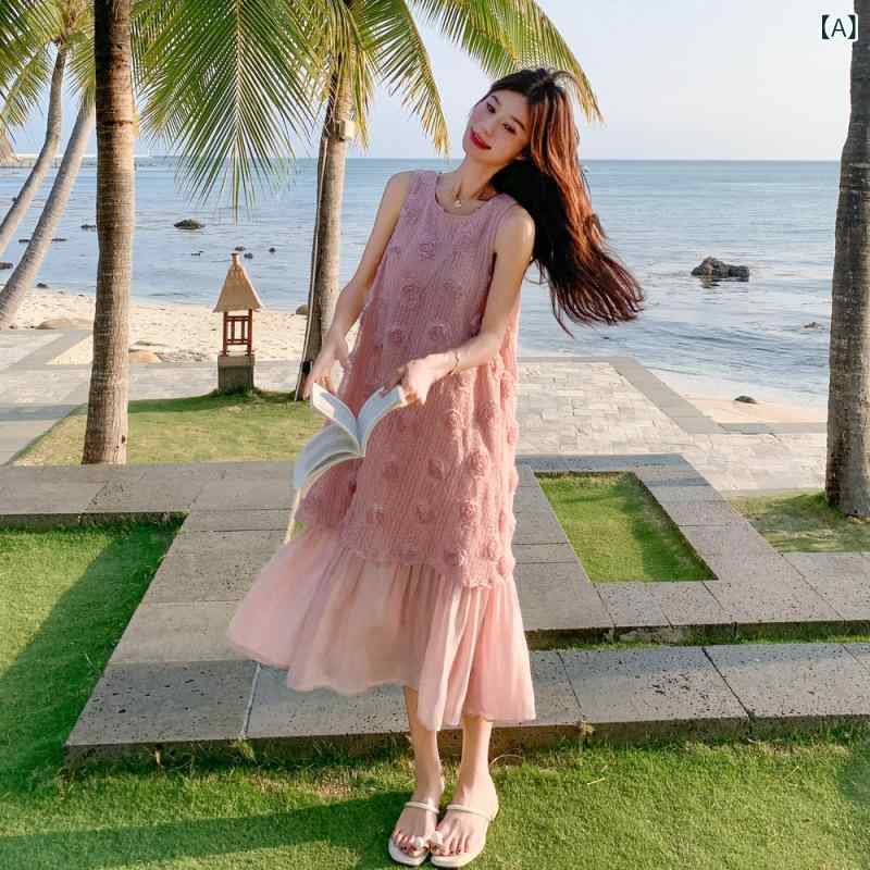 ・カテゴリ: ワンピース・スタイル: ベーシック・主な素材: 苧麻・主な素材混率: 70%〜80%・ネックライン: クルーネック・袖丈: ノースリーブ・丈: ロング丈・スカートシルエット: Aライン・ウエスト: ハイウエスト・前開き: プルオーバー・テイスト: フレッシュ、スウィート・流行要素: マカロンカラー・カラー展開: ホワイト、ピンク・サイズ展開: S、M,L,XL