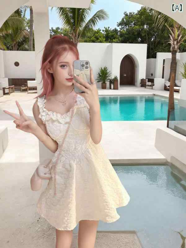 ・カテゴリ: ワンピース・スタイル: スウィートカジュアル・主な素材: ポリエステル70~80%・柄: 植物柄・加工: パッチワーク、異素材ミックス・スカート丈: ミニ丈・スカートシルエット: プリンセスライン・袖丈: ノースリーブ・ウエスト: ゴム・: ドローストリング・カラー展開: ホワイト・サイズ展開: S、M、L、XL
