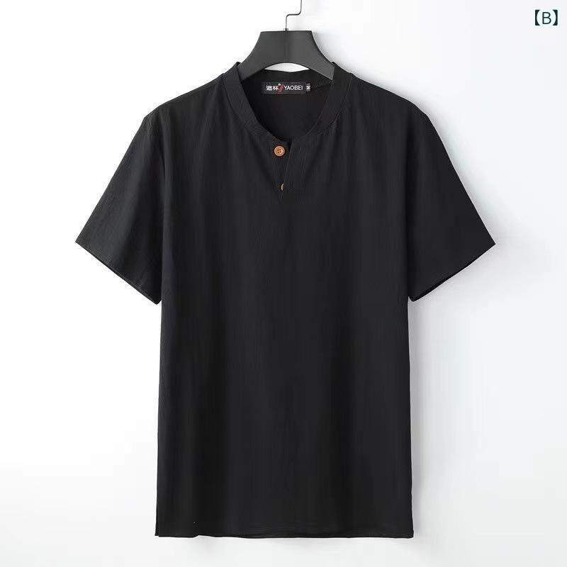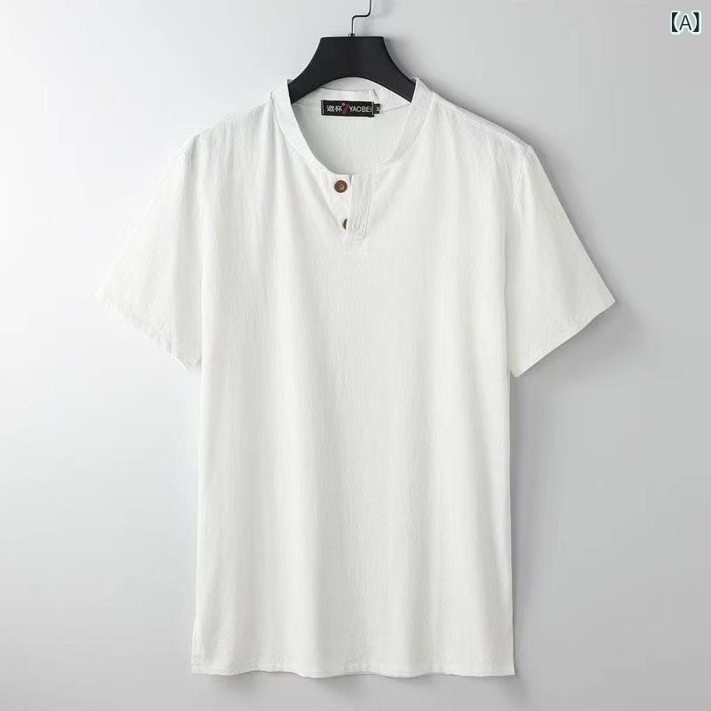 ・カテゴリ: Tシャツ・性別: メンズ・対象年齢: 大人・スタイル: 中国風・タイプ: プルオーバー・シルエット: ゆったり・主な素材: 綿混紡(綿71~80%)・ネックライン: Vネック・袖丈: 半袖・柄: 無地・厚さ: 薄手・ディテール: ボタン・機能: 通気性・シーン: カジュアル・重量: 約200g・カラー展開: ホワイト、ブラック、アプリコット、ネイビー・サイズ展開: M, L, XL, XXL, XXXL, XXXXL, 5XL