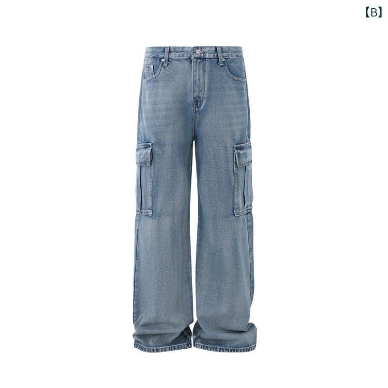 ・カテゴリ: デニムパンツ・スタイル: 韓国、ワーク・主な素材: 綿60%、ポリエステル40%・厚み: 普通・丈: ロング丈・ウエスト: ミドルウエスト・フロント開閉: ジップフライ・パンツシルエット: ストレート・特殊加工: ウォッシュ加工・加工: パッチワーク、切り替え・詳細: ボタン装飾・着用シーン: カジュアル・対象: 若年層・対象性別: 男性・カラー展開: グレー、ブルー・サイズ展開: M、L、XL、XXL