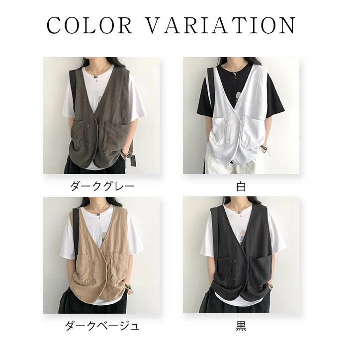素材 リネン混 生産国 中国 キーワード ジレ レディース ベスト レディース 春夏 リネン ベスト レディース おしゃれ ベスト 夏ベスト 薄手 前開き トップス ゆったり コットンリネン 麻 大きいサイズ サマージャケット ノースリーブ 羽織り オフィス カジュアル 体型カバー 重ね着 通勤 OL 送料無料 30代 40代商品名 cd-dh-038 カラー 黒/白/ダークグレー/ダークベージュ(写真参照)