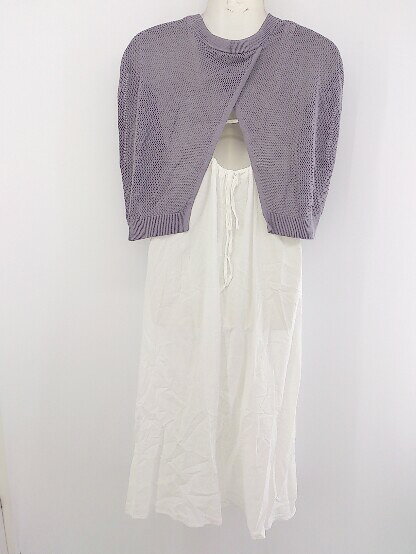◇ LOWRYS FARM ローリーズファーム レイヤード ワンピース ニット アンサンブル サイズF パープル ホワイト レディース P