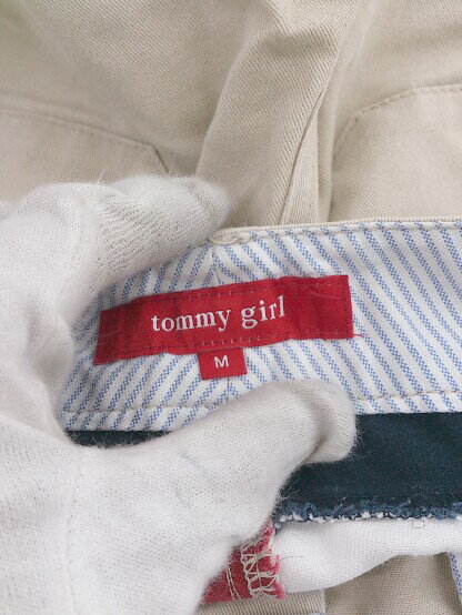 ◇ tommy girl トミーガール ロゴ刺繍 ライン チノ パンツ サイズM ベージュ系 レディース E