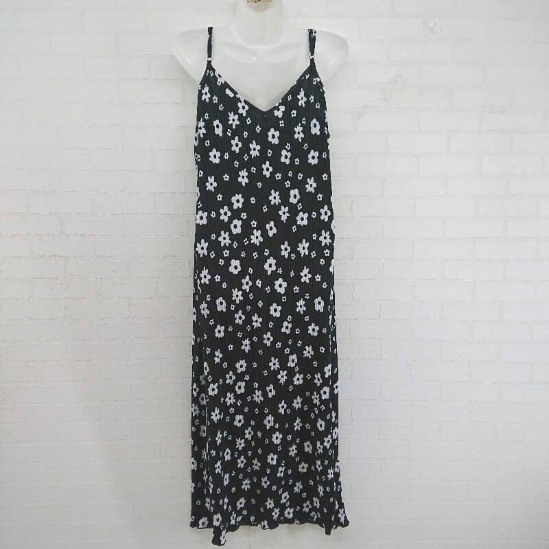 ◇ Ray BEAMS 花柄 フラワー プリーツ キャミソール ロング ワンピース サイズF ブラック ホワイト レディース P