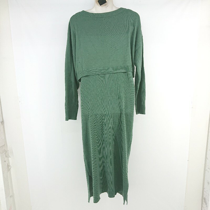 ◇ LOWRYS FARM くすみカラー ニット ワンピース セーター アンサンブル サイズF グリーン系 レディース P