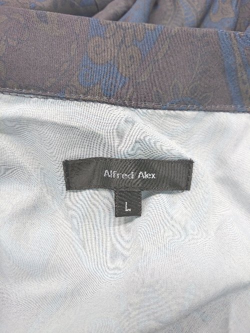 ◇ Alfred Alex アルフレッドアレックス 総柄 オープンカラー 五分袖 シャツ サイズL チャコール グレー系 メンズ P