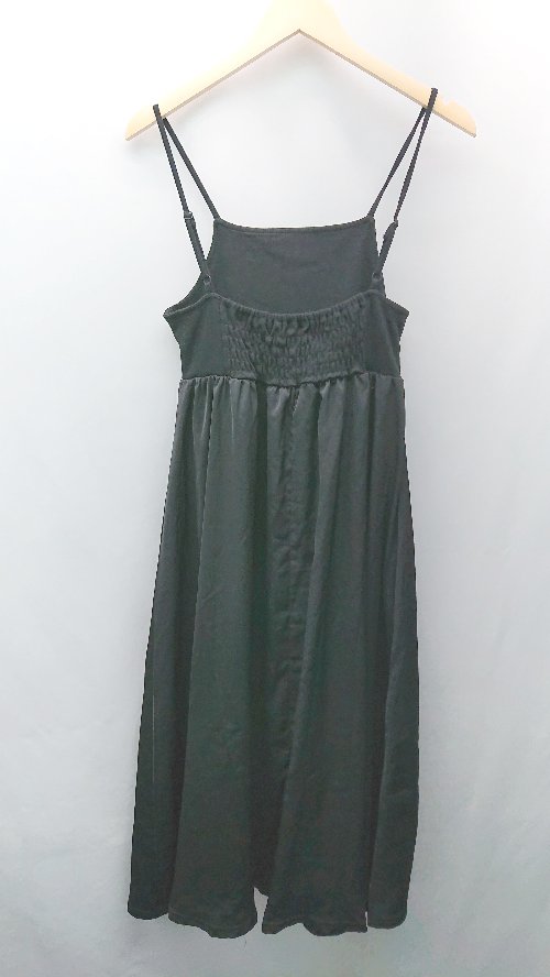 ◇ tip top ガーリー キャミソール 異素材 インナー リブ ロング丈 ワンピース サイズFREE ブラック レディース E