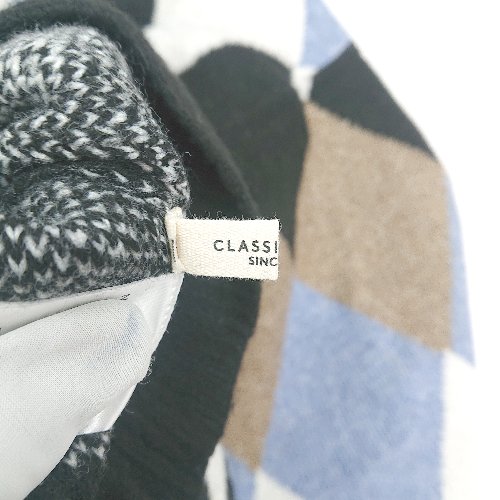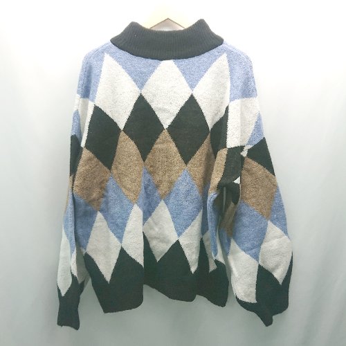 ◇ classical elf モックネック セーター プルオーバー ダイヤ柄 長袖 ニット サイズXL ブラック レディース E
