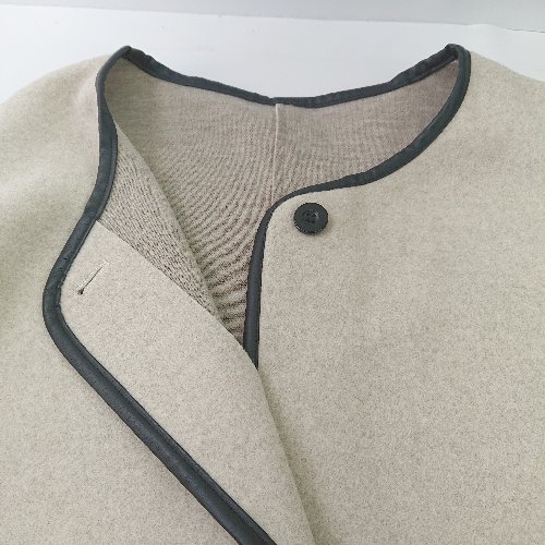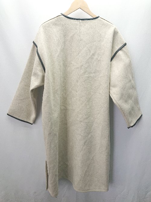 ◇ Aunt Marie's アントマリーズ パイピング ノーカラ- 長袖 ガウンコート サイズS アイボリー系 レディース E