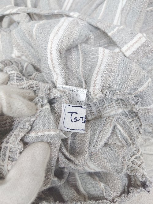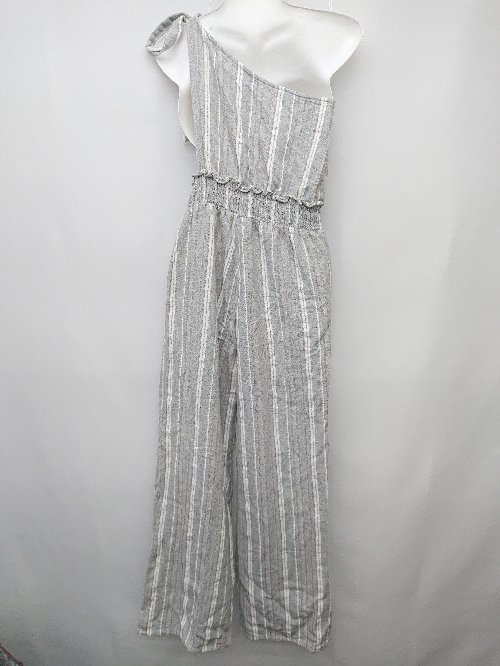◇ To the sea トゥーザシー ワンショルダー ストライプ サロペット サイズF グレー ホワイト レディース P