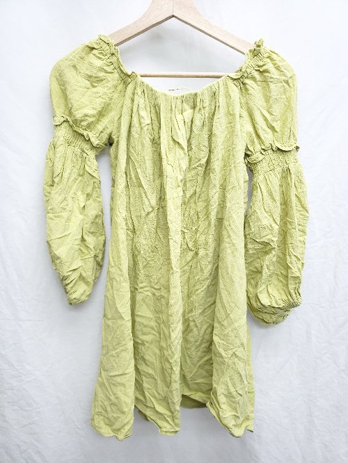 ◇ Θ ROYAL PARTY ロイヤルパーティー パフスリーブ 長袖 ミニワンピ チュニック サイズF ライトグリーン系 レディース P