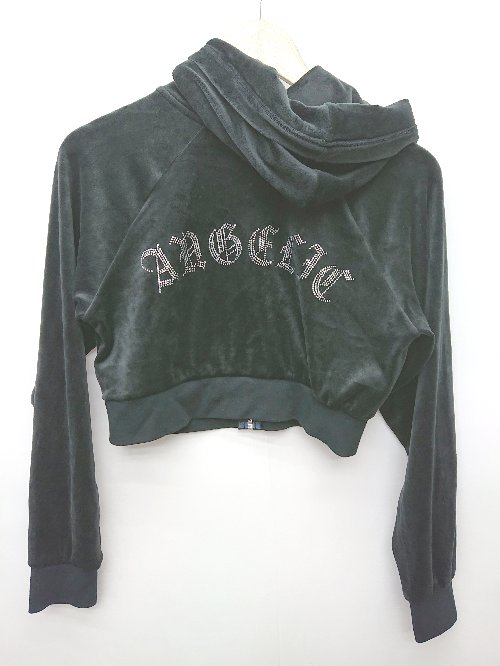 ◇ ⊇ H&M ラインストーン 起毛 クロップド ジップアップ パーカー サイズM ブラック レディース P
