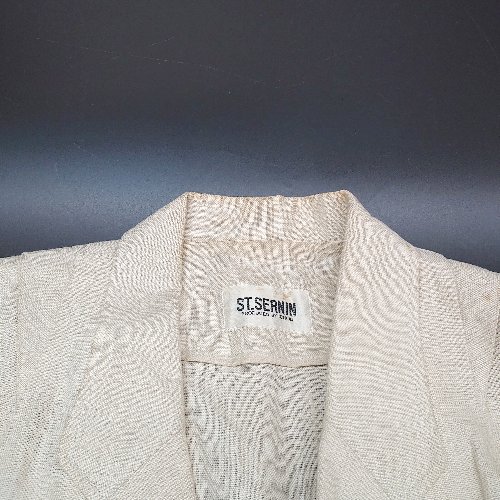 ◇ st.sernin タック 麻100% カジュアル 羽織り テーラード 長袖 ジャケット サイズ9A3 ベージュ レディース E