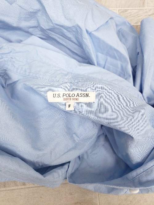 ◇ ◎⊂ U.S. POLO ASSN. ポケット ワンポイント 半袖 シャツ サイズF ブルー レディース P