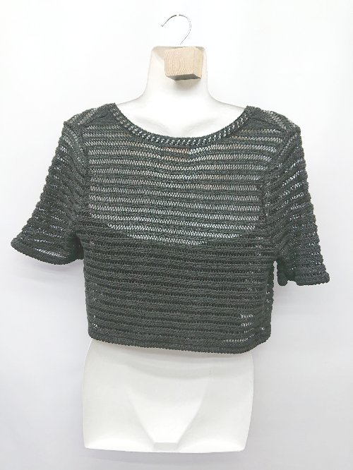 ◇ ⊂ eimy istoire チェーン クロシェ アンサンブル カーディガン チューブトップ サイズF ブラック レディース P