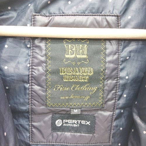 ◇ ⊇ BEAMS HEART ビームス ハート 内側ドット ジップ全閉め なし フードダウンベスト サイズM ブラック系 メンズ E
