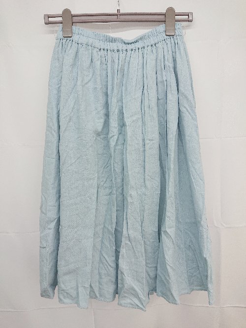 ◇ ⊂ SLOBE IENA スローブ イエナ リネン 膝下丈 フレア スカート サイズ38 ライトブルー レディース E