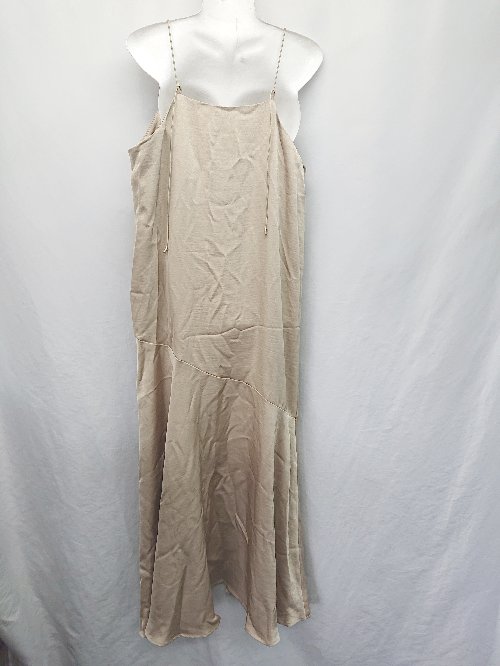 ◇ ⊂ And Search アンドサーチ サテン調 ロング キャミソール ワンピース サイズM ベージュ系 レディース E