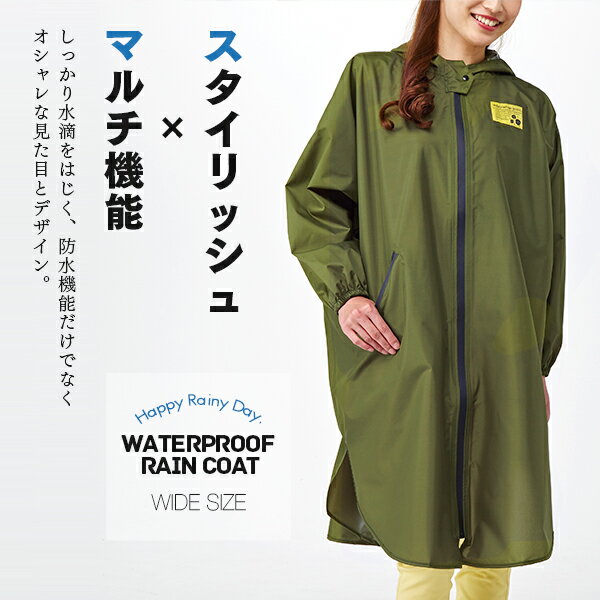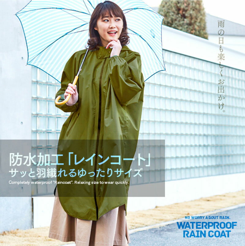 【ゆったり防水レインコート カーキ/ネイビー A-02】ファッション レディース レインウエア レインコート 撥水加工 ゆったりサイズ 収納ポーチ付き
