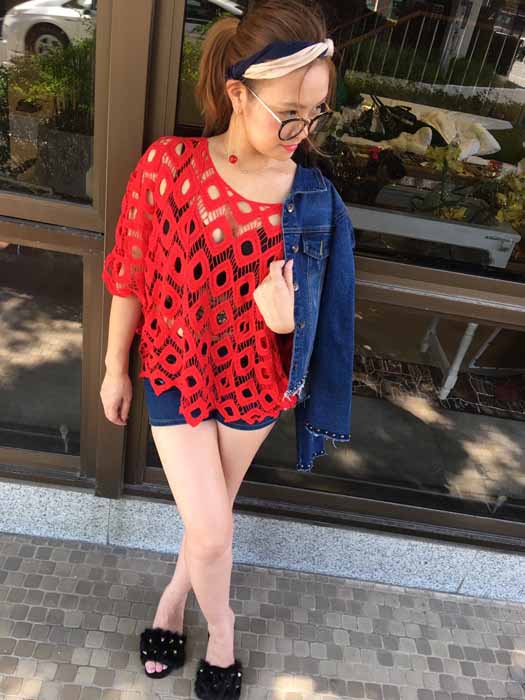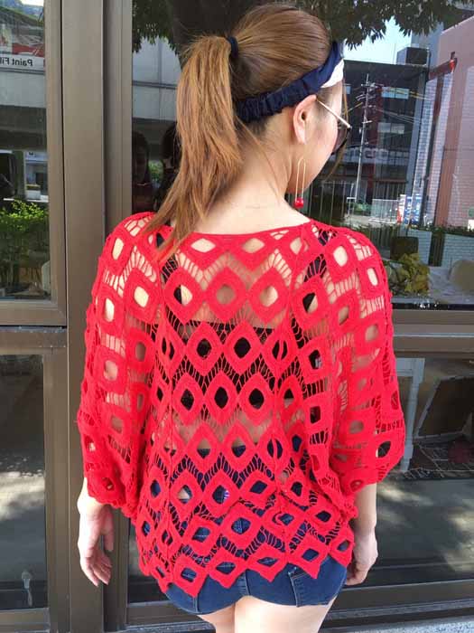 サイズ:M (モデル参考:バスト/82cm ウエスト/61cm ヒップ/82cm) 着丈:55cm バスト:100cm 素材:ポリエステル/65% 綿/35% 生地:レース ストレッチ:× 裏地:×柄編みレースの透け感がカワイイ★ 丈は長めのチュニックタイプ ストキャバのセカンドライン「NUDE HOTEL」は レースをカジュアルに崩すコーデが◎ デニム&Gジャンやライダースで、セレカジ風☆