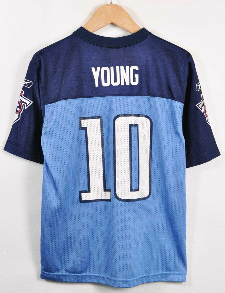 ■商品説明 大注目のフットボールシャツ!USA古着「Reebok」製フットボールシャツです!こちらはNFLの人気チーム、テネシー・タイタンズの名プレーヤー、ヴィンス・ヤングの1枚です!ライトブルーベース×ネイビーの配色がとても良い雰囲気ですのでコーディネートのポイントとして大活躍してくれます!今年はこの様なナンバリング(背番号など)アイテムが大注目されていますので本当にお勧めです!