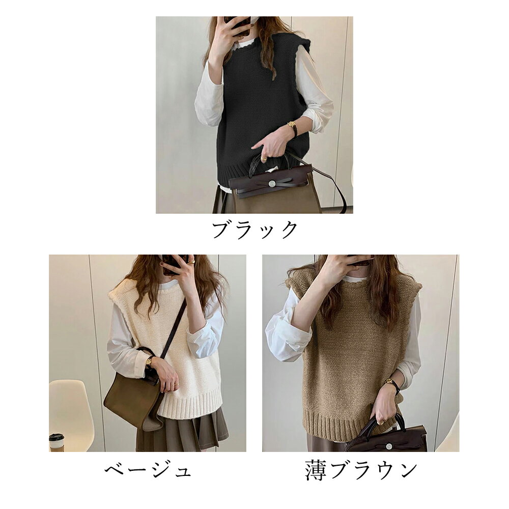 黒 ベージュ 薄茶色 M 立体感のある編みがポイントになっている、おしゃれなニットベストです。
