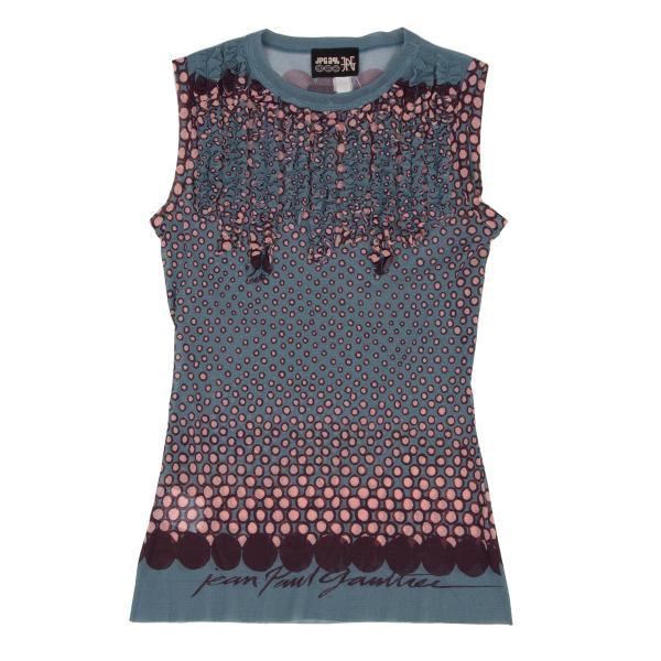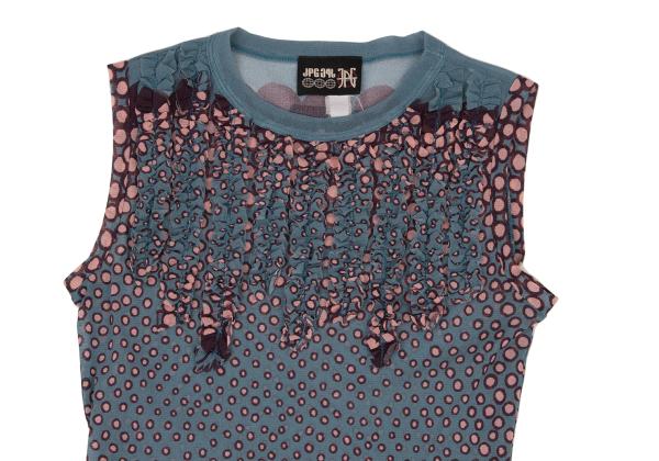 ジページェ バイ ジャンポールゴルチエJPG by GAULTIER フリルテープドットプリントパワーネットノースリーブ ブルーピンク紫40商品コード:K-147702コンディションランクコンディション詳細透け感があります。